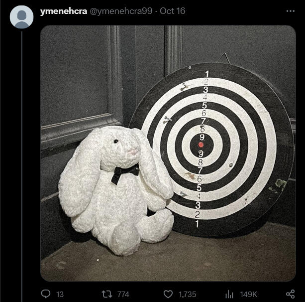 Комментарий 9mynameis1 под фотографией кролика и доски для дартса.